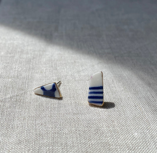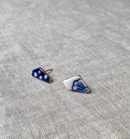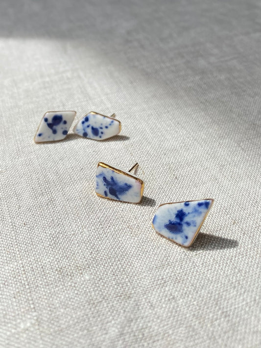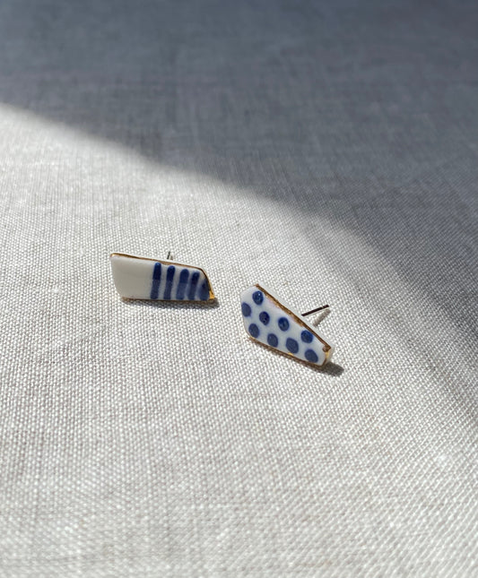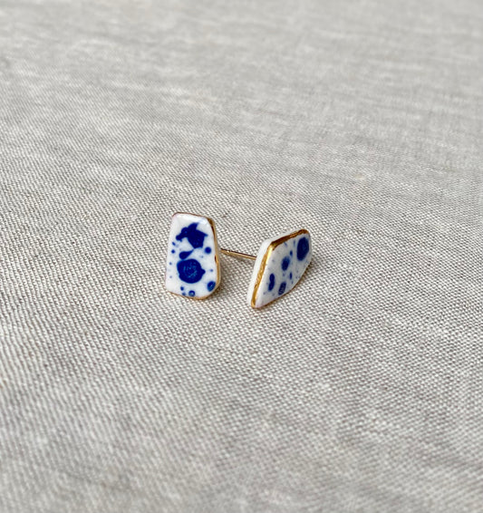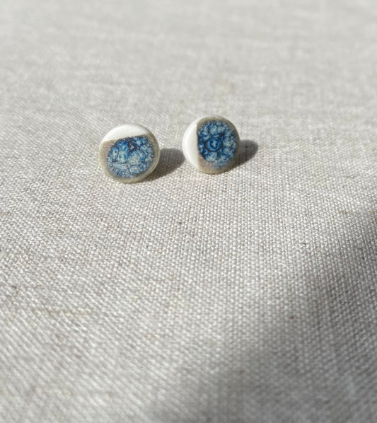 Porcelain painted studs | Blue rutile and toasted sage | 1