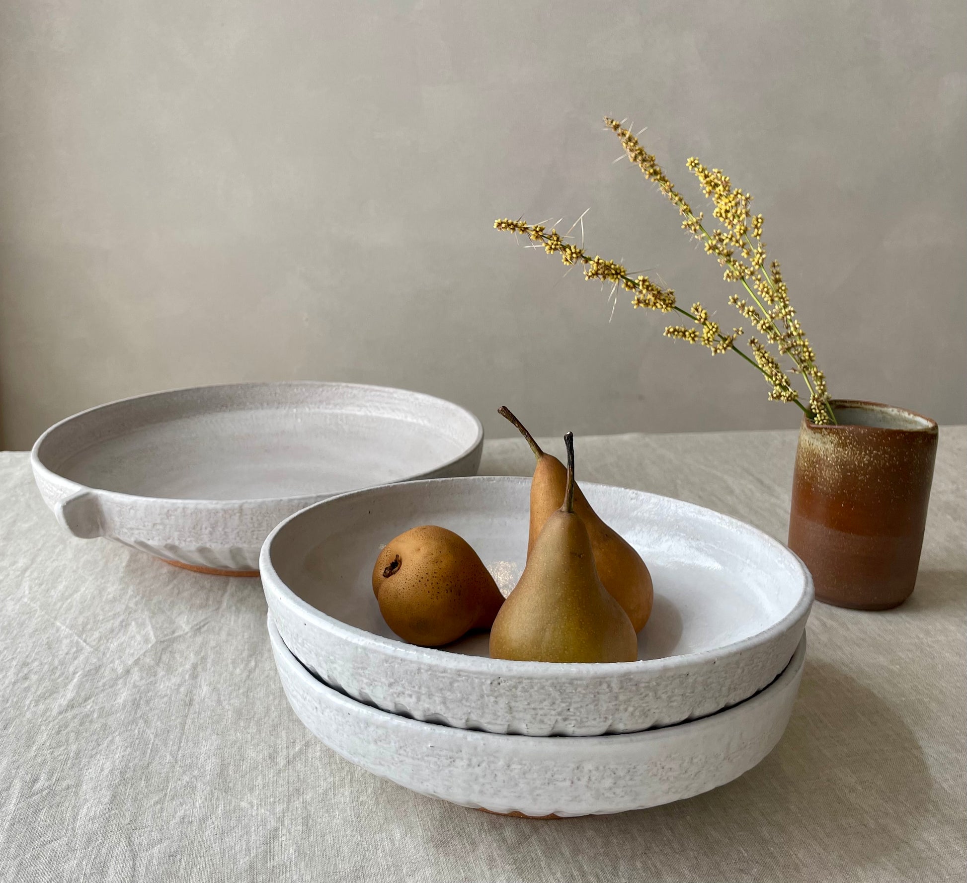All of my ceramics are handmade so no two are exactly alike. You will see variations in colour, texture and form that are inherent to the handcrafted process.