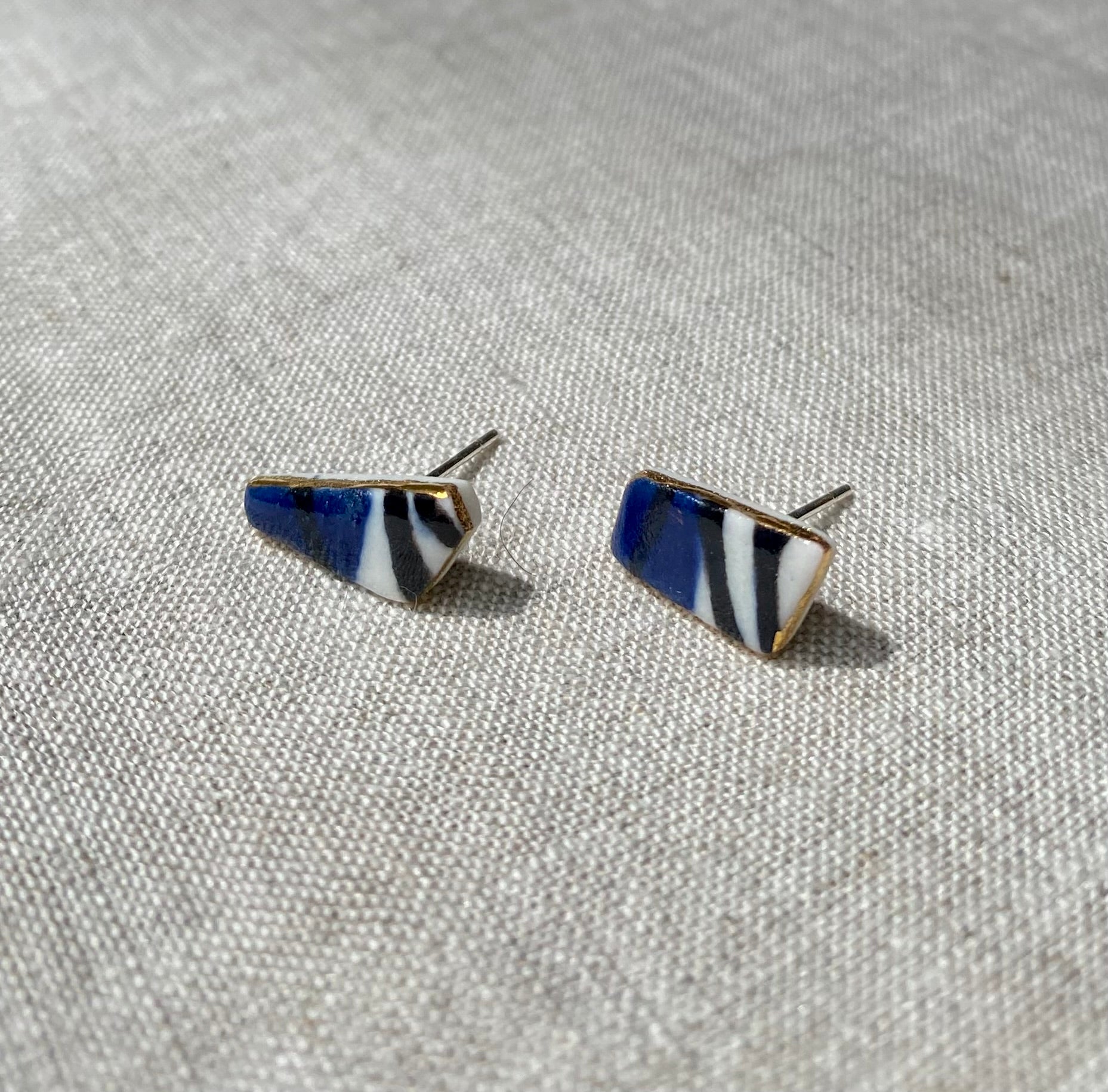 Australian porcelain, hand painted with cobalt and black glaze and gold lustre.