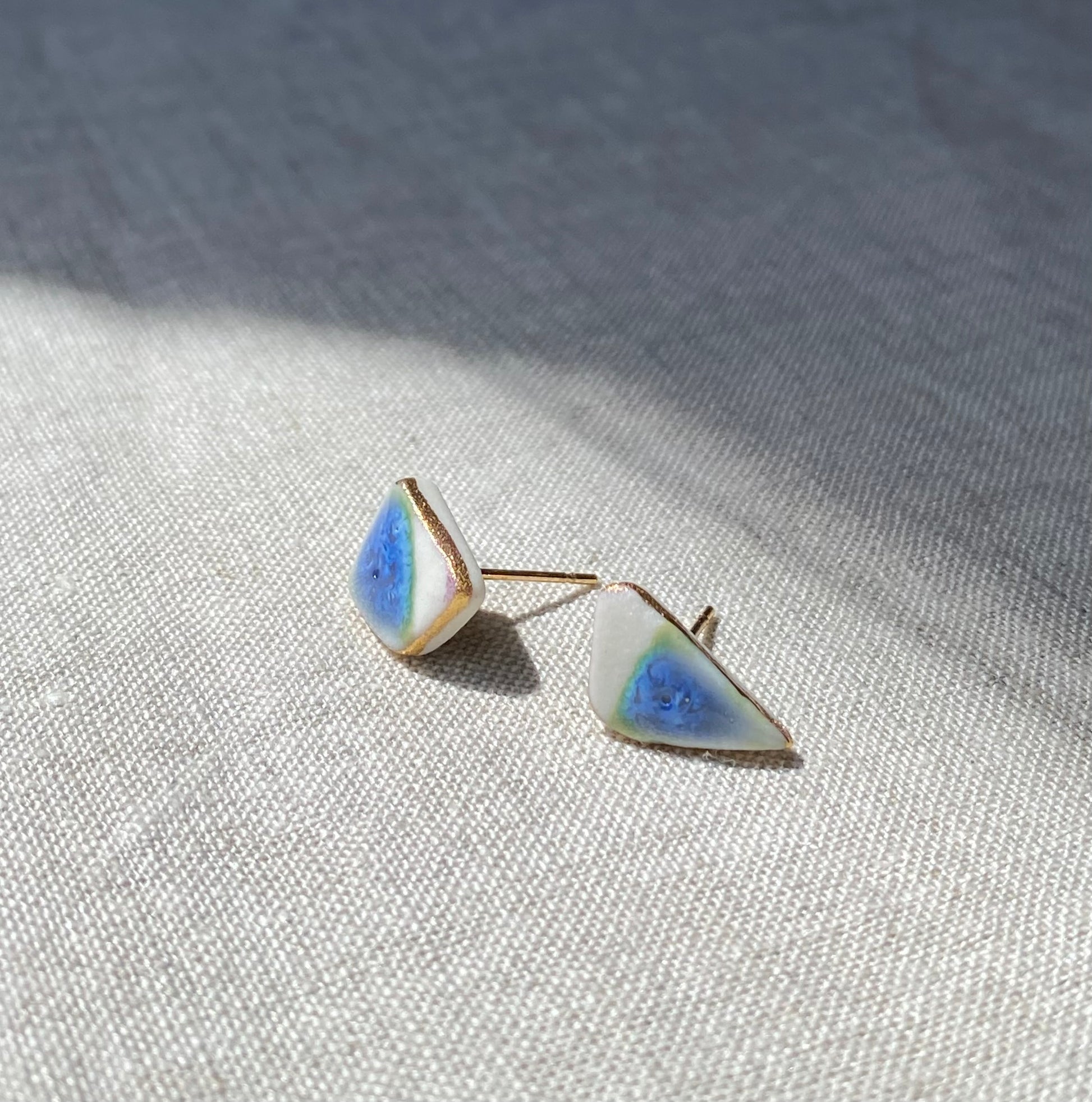 Australian porcelain, hand painted blue and turquoise glaze and gold lustre.