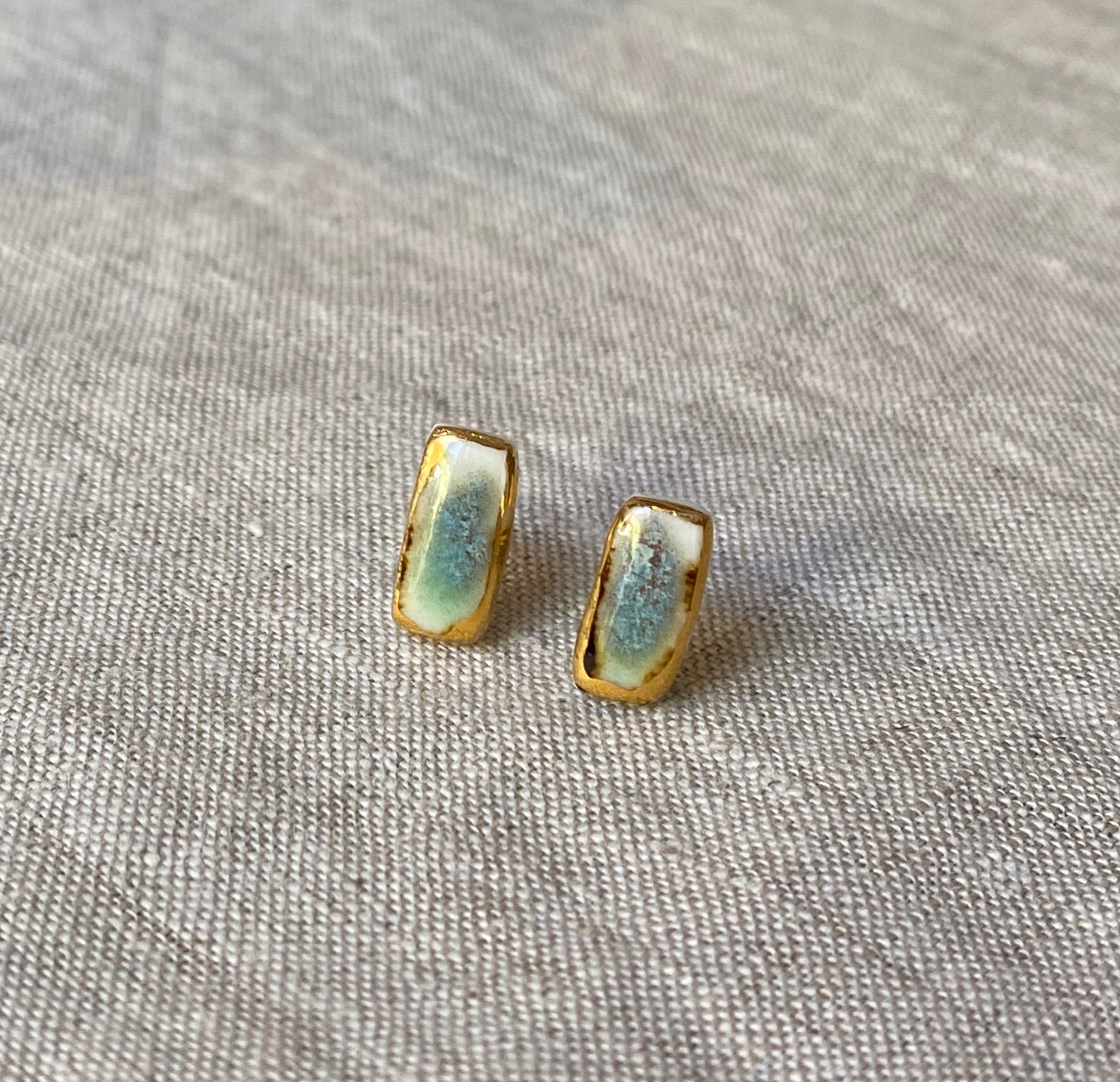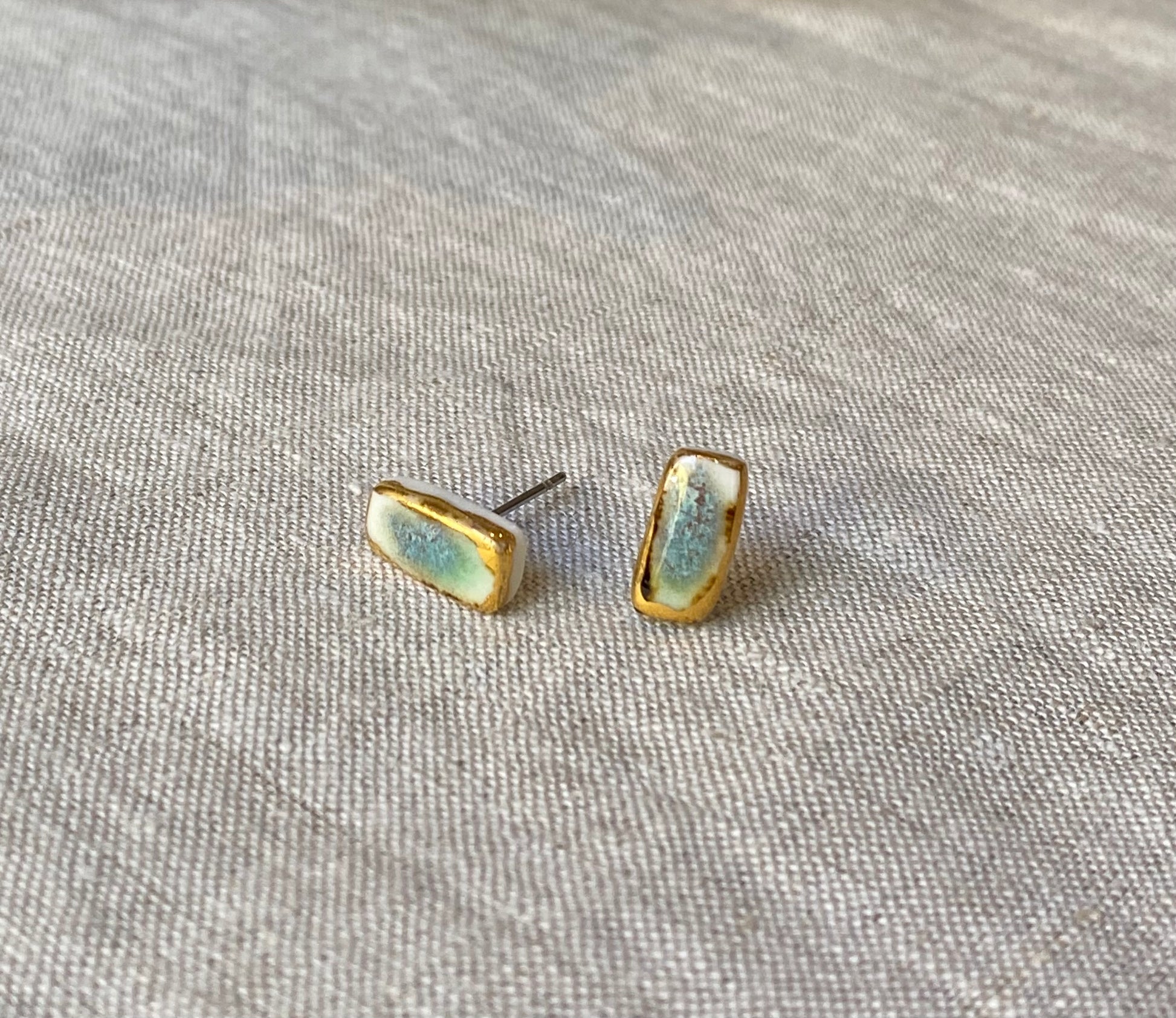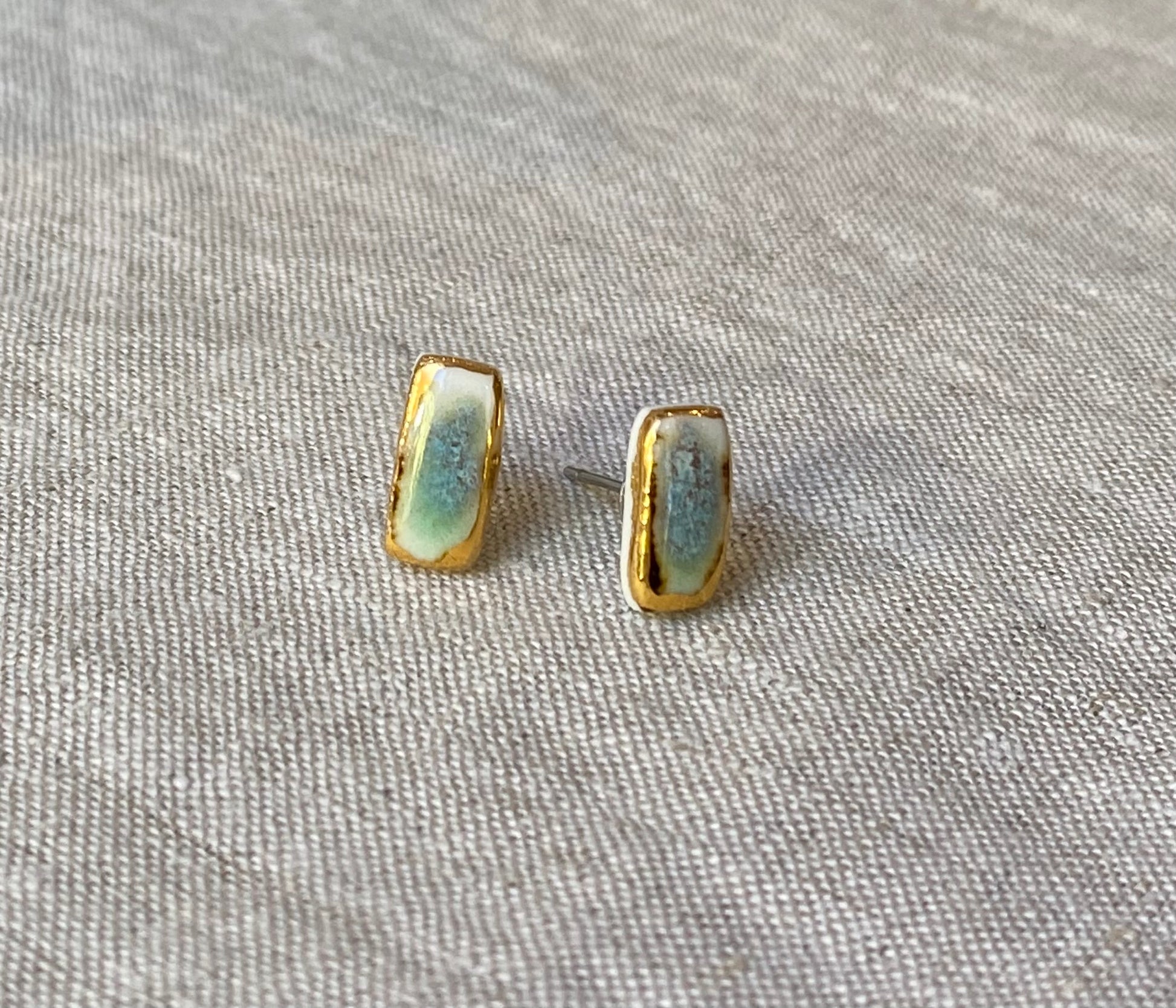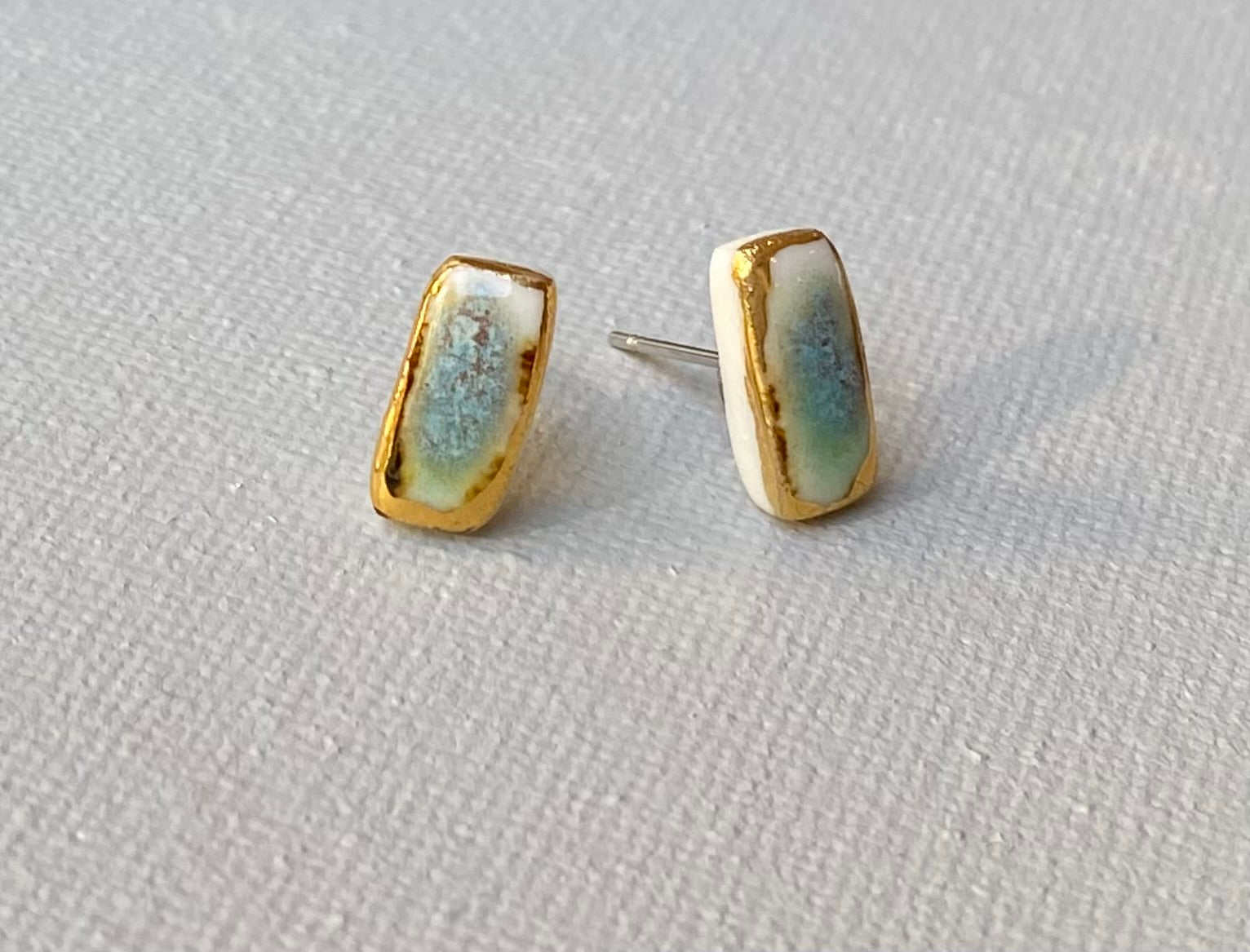 Australian porcelain, blue and turquoise glaze with gold lustre.