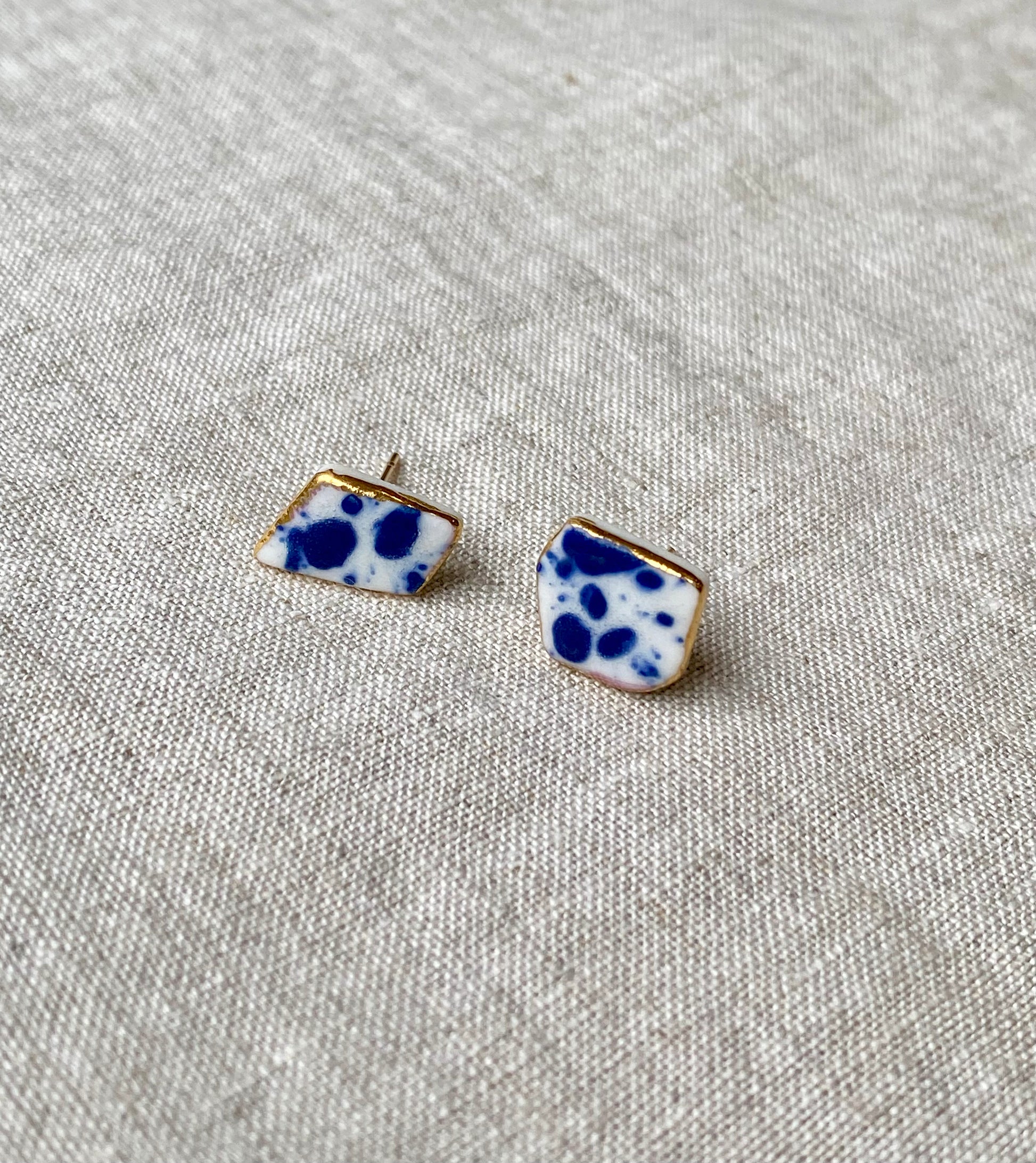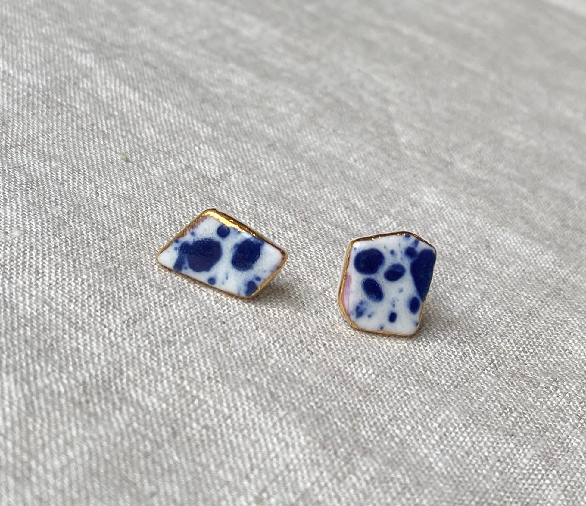 Australian porcelain, hand painted with cobalt blue glaze and gold lustre.