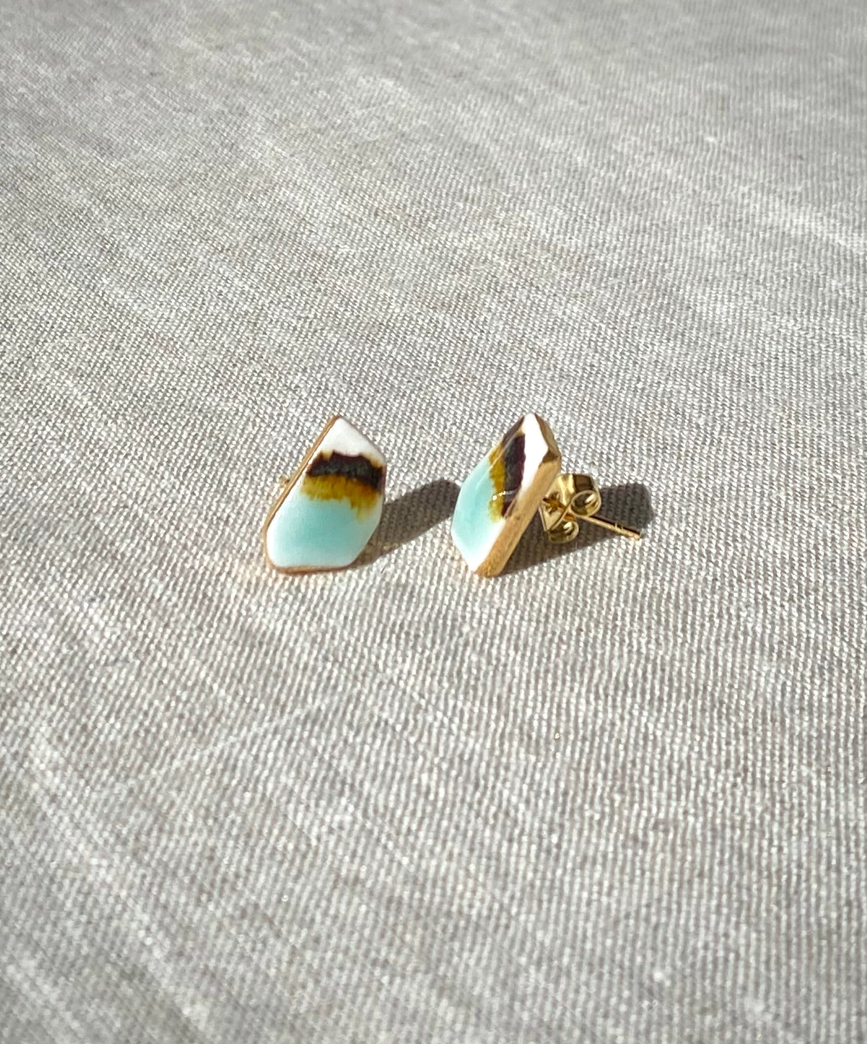 Australian porcelain, hand painted Chinese style celadon glaze layered with ironstone and accented with 24K gold lustre.