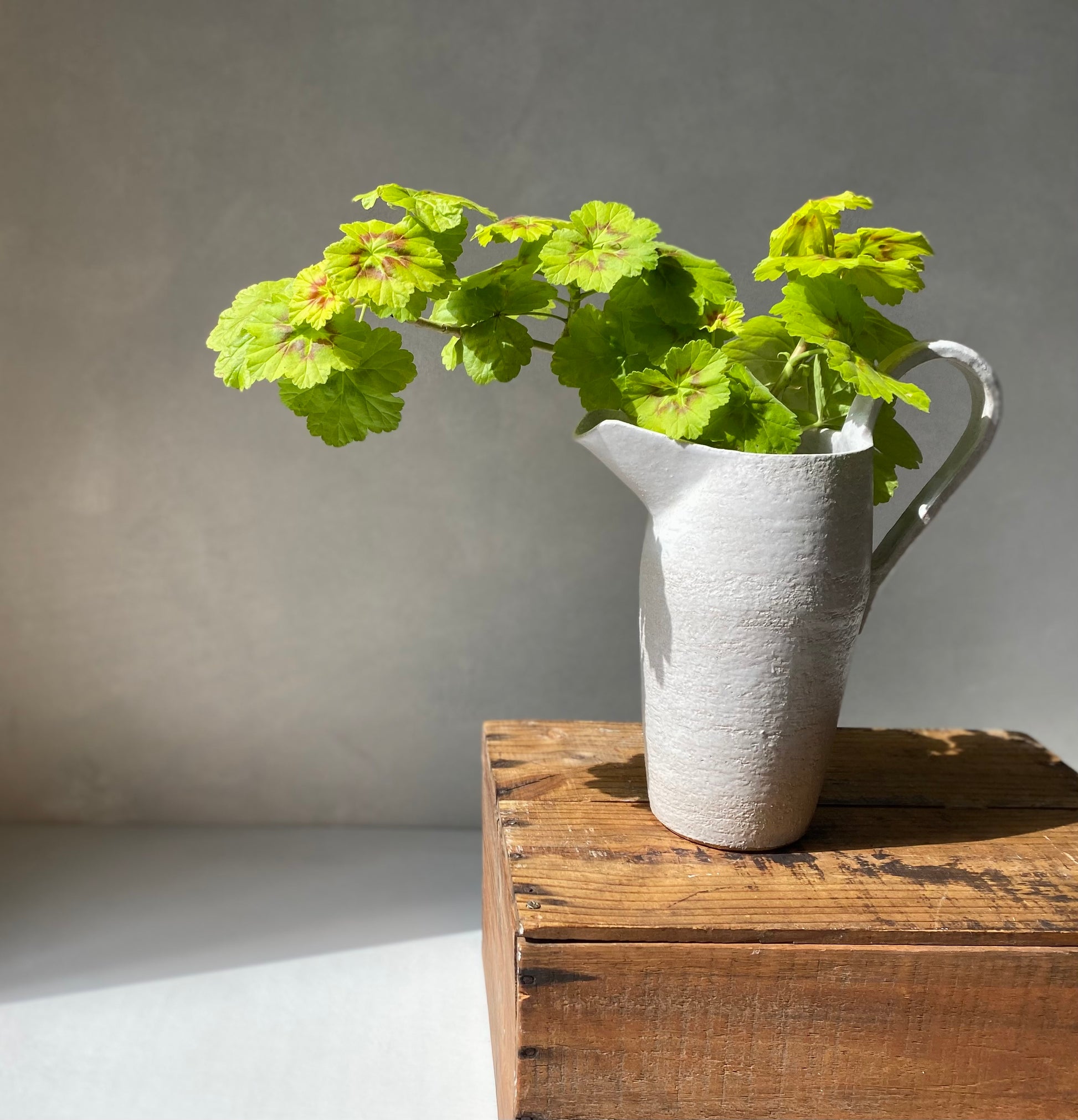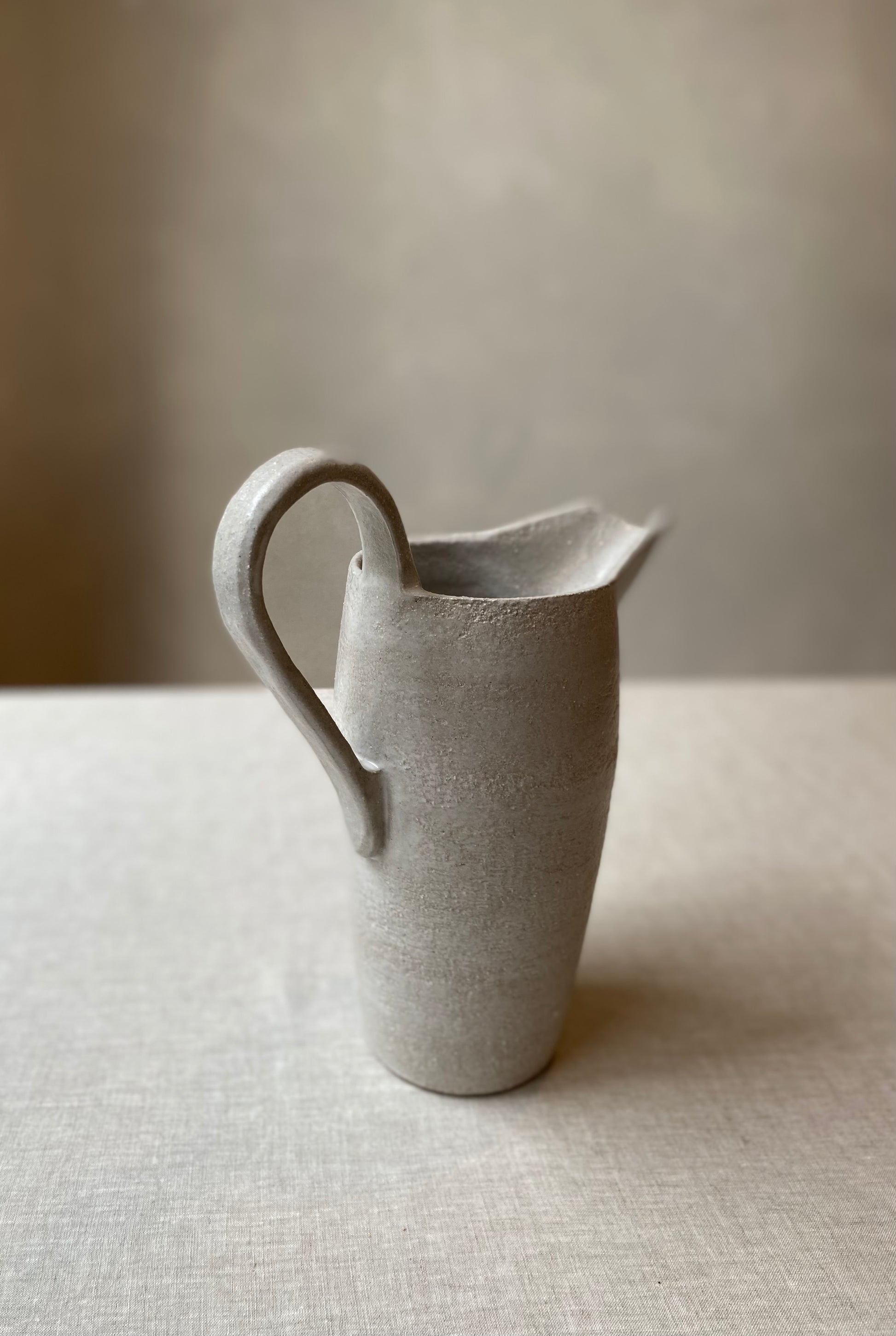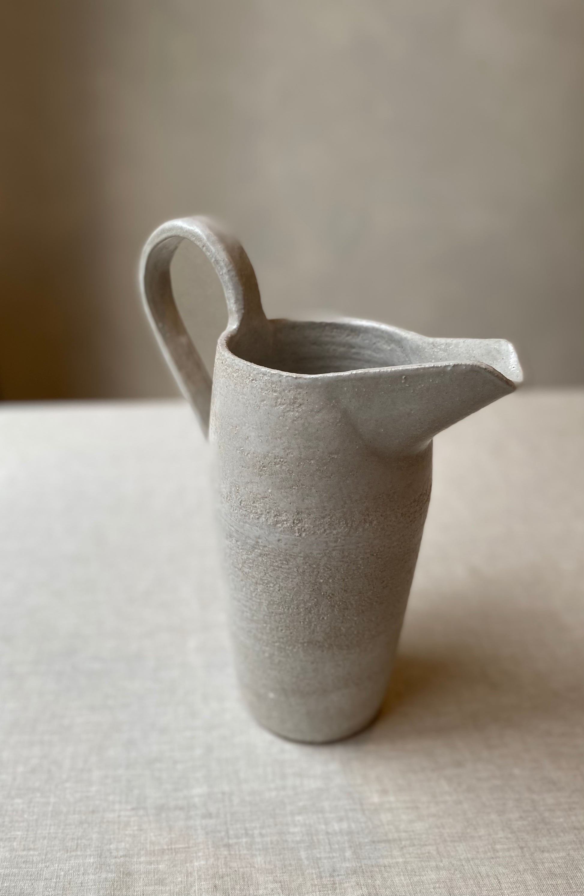 Wheel and hand formed jug in textured stoneware with a matt white glaze.