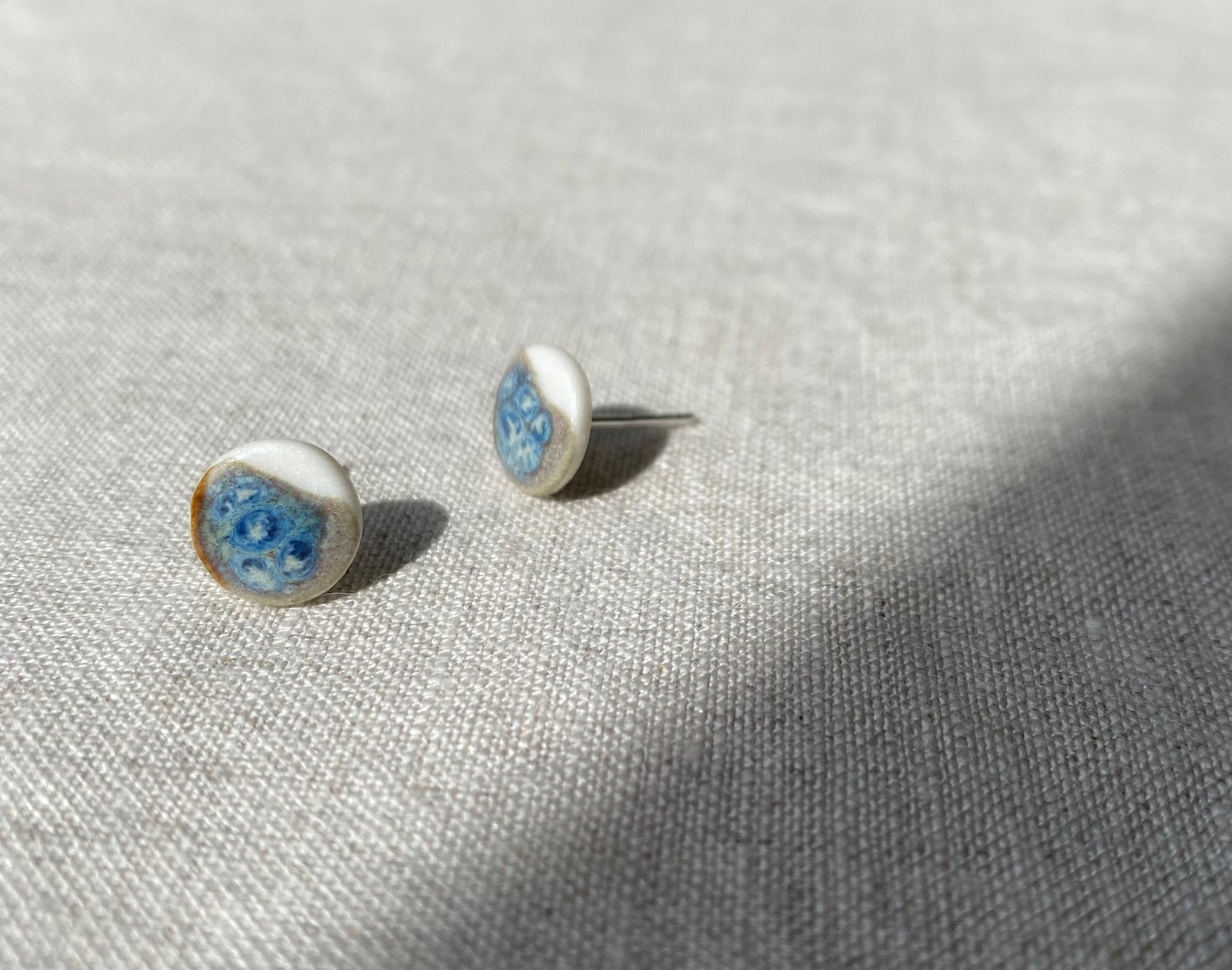 Porcelain painted studs | Blue rutile and toasted sage | 1