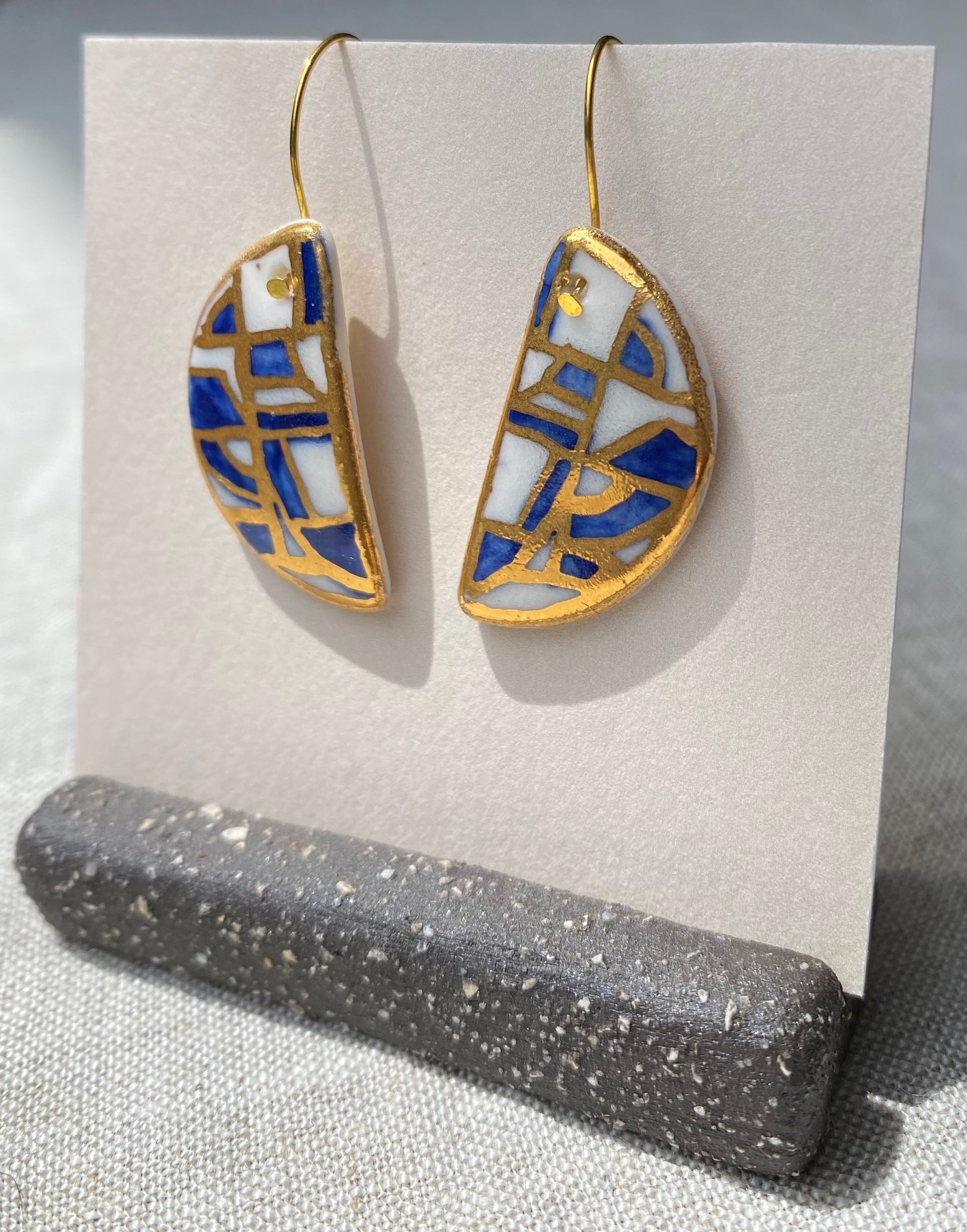 Australian porcelain, hand painted with cobalt blue glaze and gold lustre.